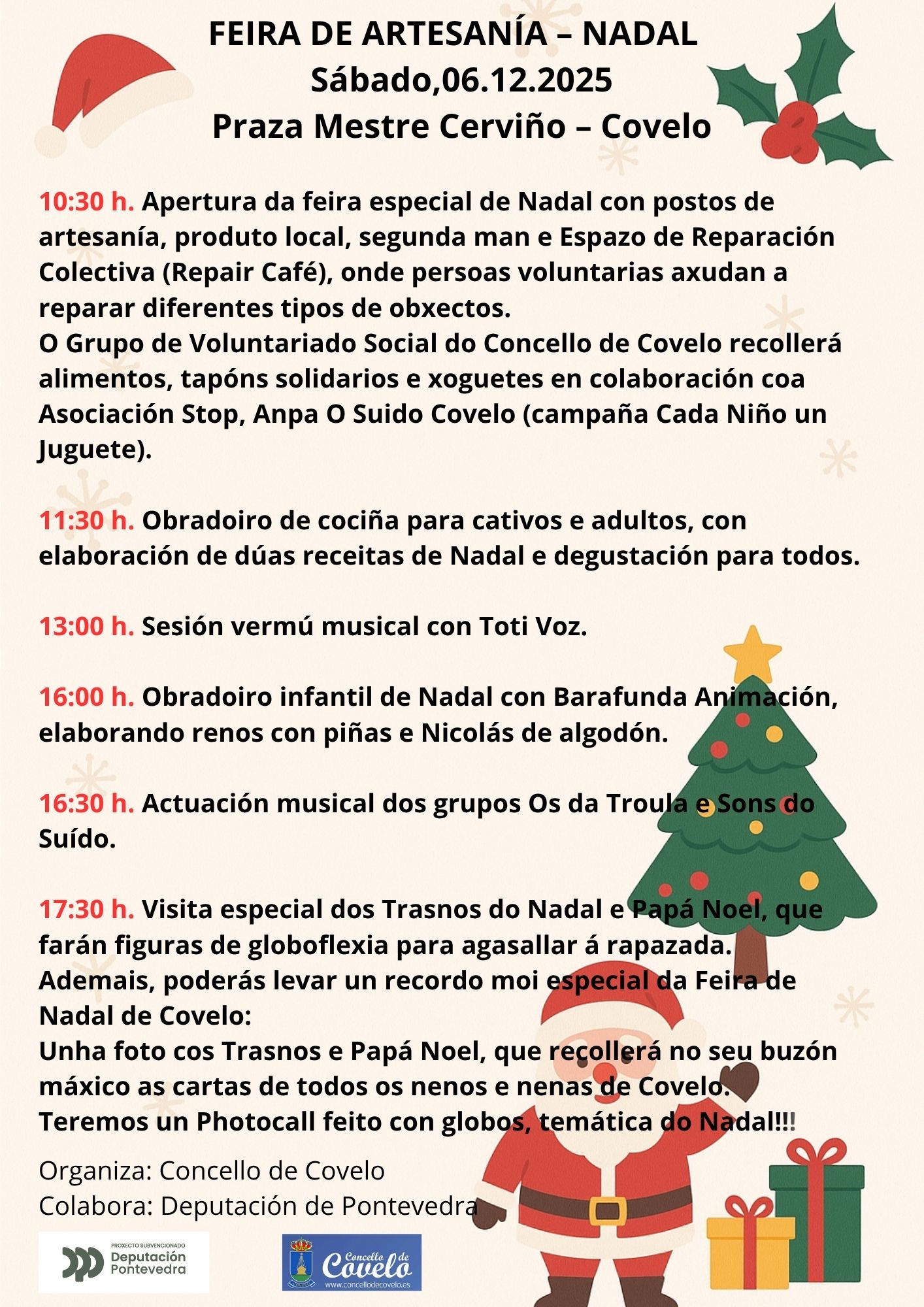 El sábado, 6 de diciembre, la Plaza Mestre Cerviño se llenará de color, música y alegría con nuestra tradicional Feria de Artesanía de Navidad 2025.