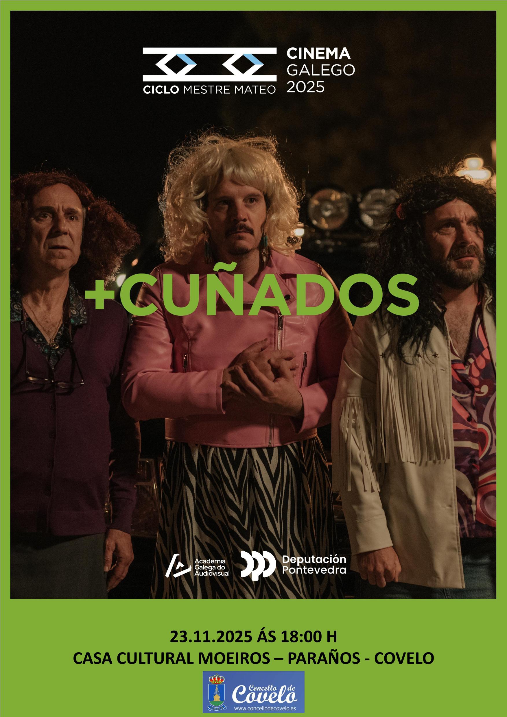 Este noviembre y diciembre, Covelo se llena de cine! Nuestro ayuntamiento se suma al Ciclo Maestro Mateo, el programa que lleva por los municipios de la provincia los mejores largometrajes y documentales finalistas y ganadores de los Premios Maestro Mateo. Un ciclo promovido por la Academia Gallega del Audiovisual y la Diputación de Pontevedra, que acerca al vecindario el talento, la creatividad y las producciones más destacadas del audiovisual gallego. A lo largo de las próximas semanas iremos publicando los carteles con todas las fechas, horarios y lugares de las proyecciones. Pero ya te podemos adelantar la fantástica programación que tendremos en Covelo! PROGRAMACIÓN DEL CICLO MAESTRO MATEO EN COVELO LARGOMETRAJES + CUÑADOS