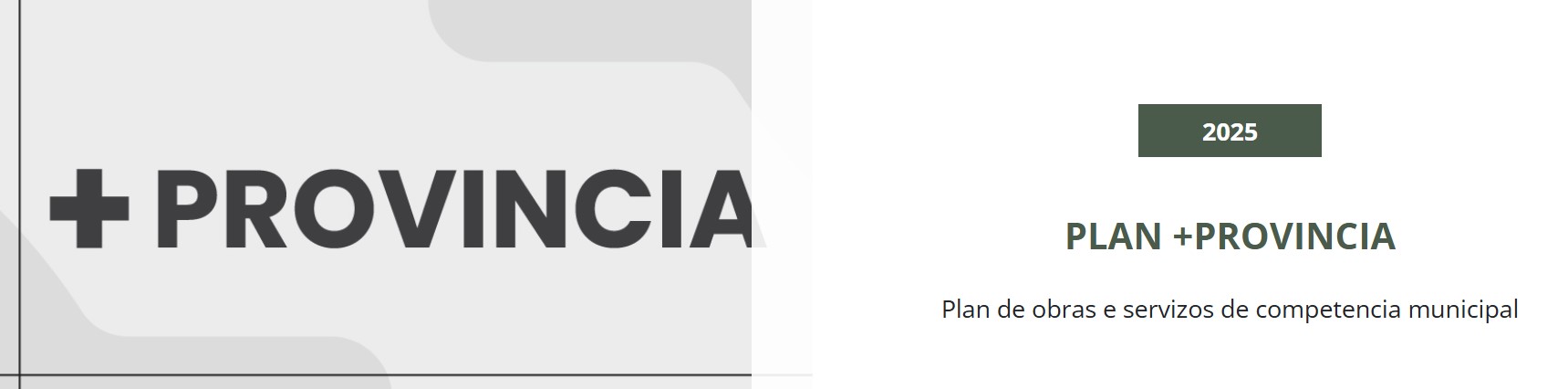 O Plan de obras e servizos de competencia municipal (Plan +Provincia) 2025 é de carácter anual e está financiado con fondos propios da Deputación e destinado a colaborar nas obras e nos servizos de competencia municipal dos 59 concellos de menos de 50.000 habitantes da provincia. O seu obxectivo é impulsar accións que lles permitan ás entidades municipais consolidar os criterios de desenvolvemento que favorezan a xeración de oportunidades, a creación de sinerxías cos axentes de cada lugar e a cohesión territorial.
