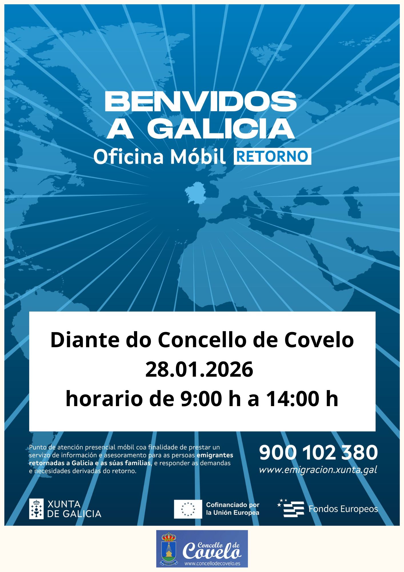 La unidad móvil €Retorno€ del programa Galicia Retorna, de la Secretaría General de Emigración de la Xunta de Galicia, se desplazará a nuestro ayuntamiento para atender a las personas retornadas