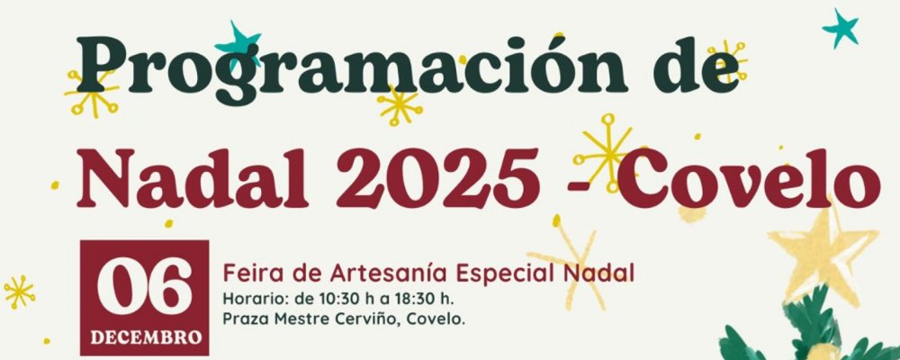 06 diciembre 2025Feria de Navidad 2025El sábado, 6 de diciembre, la Plaza Mestre Cerviño se llenará de color, música y alegría con nuestra tradicional Feria de Artesanía de Navidad 2025.