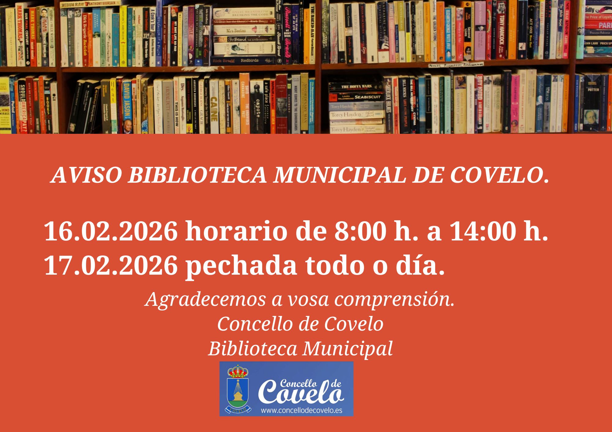 Horario Biblioteca Municipal de Covelo 16 e 17 de febreiro de 2026.